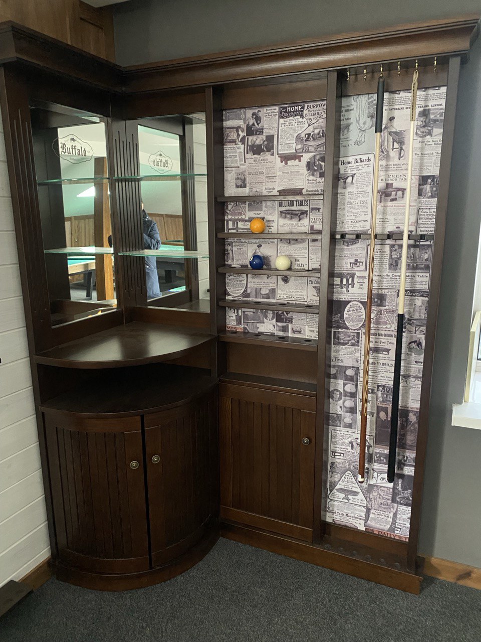 Barek narożny ELIT – wykonany z litego drewna jesion. Solidny barek na pewno uzupełni twoja sale bilardowa i zrobi spędzenie czasu jeszcze bardziej komfortowe.