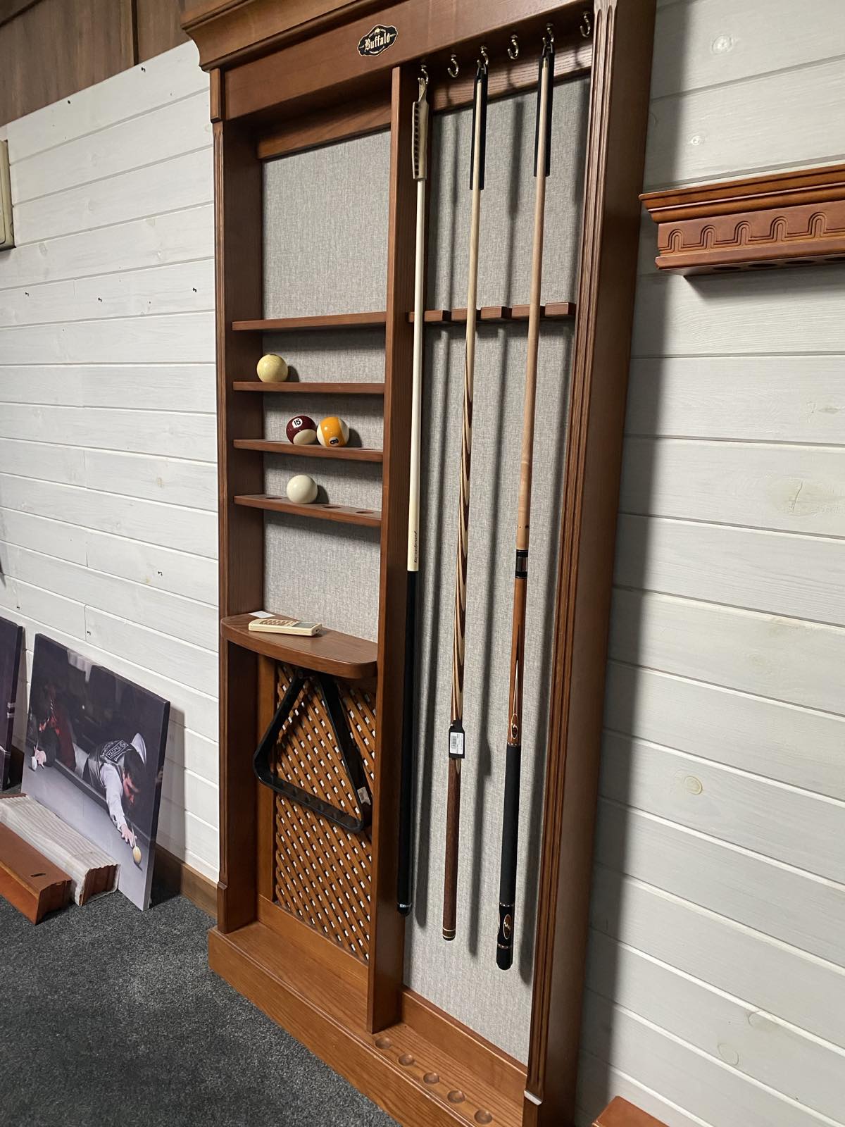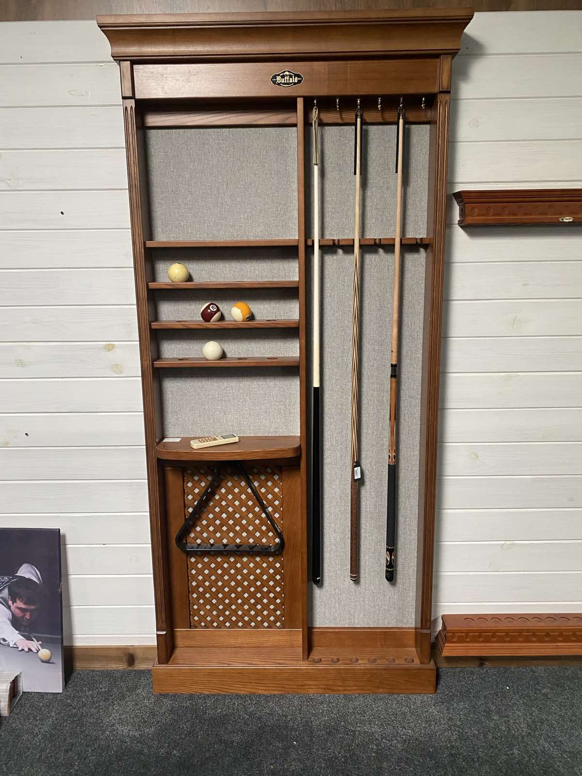 Stojak na kije bilardowe ELIT – wykonany z litego drewna jesion. Solidny stojak na ścianę na pewno uzupełni twoja sale bilardowa i zrobi spędzenie czasu jeszcze bardziej komfortowe.