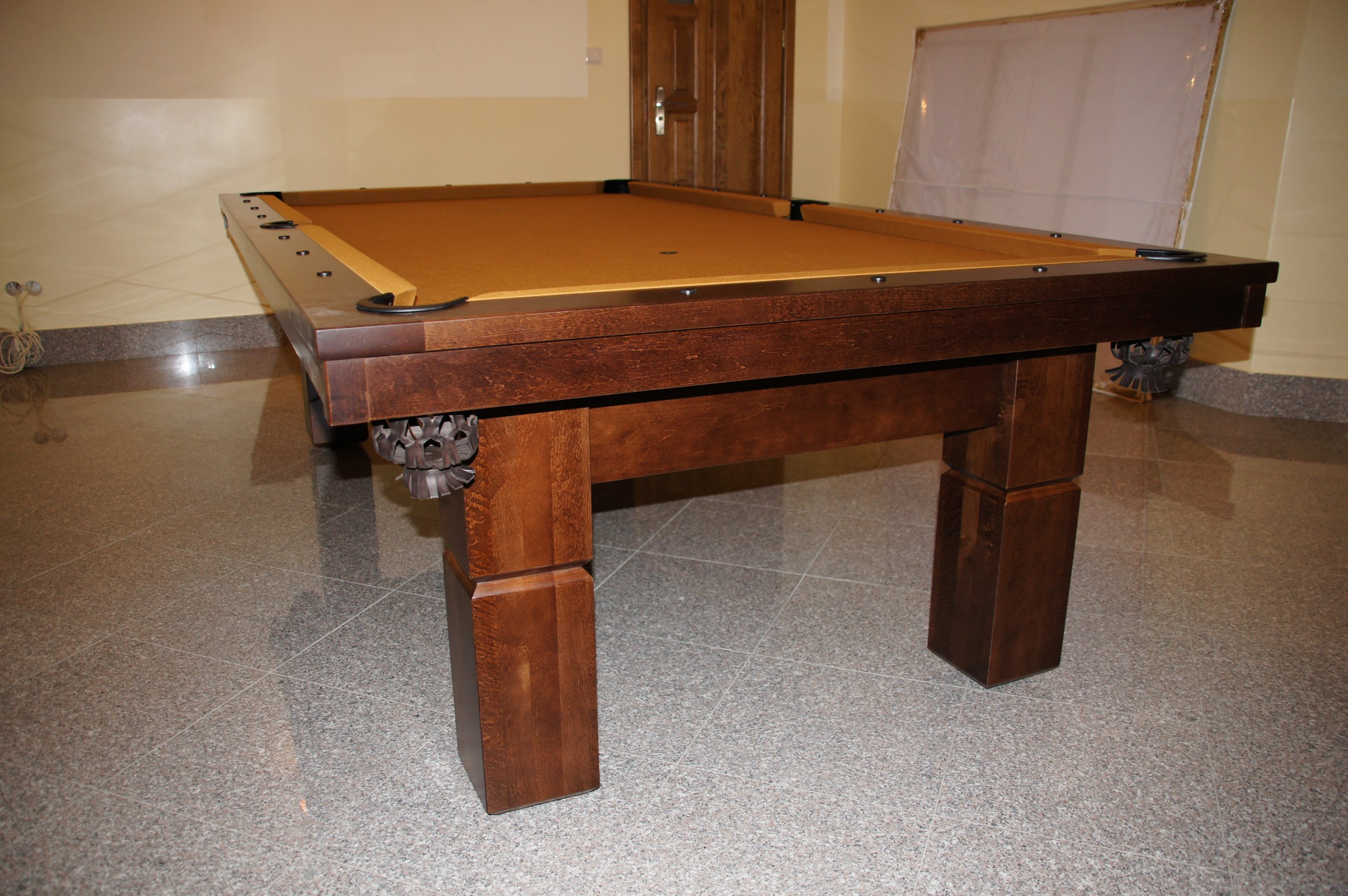 Stół bilardowy 8ft (pole gry 112x224) na 1cz. płycie kamiennej, Stół bilardowy model DODO producent FABIL. Korona stołu bilardowego drewniana, nie z płyty wiórowej została odświeżona natryskowo, nogi są drewniane plus 2-cz. . Bilard posiada normalne ślady użytkowania. Bandy gumowe w dobrym stanie są elastyczne i oddają jak należy.