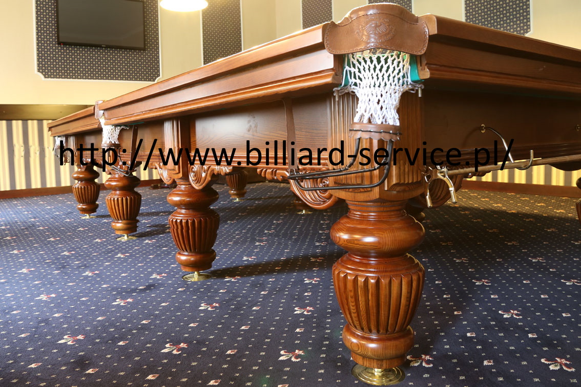 Ten model stołu snookerowego „BARON” wykonany jest w stylu klasycznym. Połączenie klasycznych elementów i  designu przyciągnie uwagę prawdziwych miłośników snookera. Toczone nogi,  ręcznie rzeźbione elementy, wysokiej jakości pokrycie drewna lakierami uznanych europejskich producentów zwrócą uwagę na ten model. Stoły wykonane z naturalnego twardego drewna - jesion, buk, dąb na 8, 6 i 4 nogach (w zależności od wielkości). Płyta kamienna 5-cz 40mm,  profesionalne bandy L-77,  sukno HAINSWORTH,  kosze skórzane, odlewy i stopy z mosiądzu . Do wyposażenia stołów bilardowych polecamy akcesoria znanych światowych producentów. Dopracowany design w połączeniu z wysokimi właściwościami  stołu robią ten model idealnym.